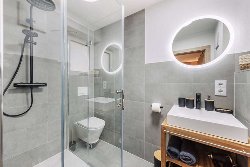 3 Badezimmer mit jeweils DU/WC und Waschtisch (2 mit Doppelwaschtische)